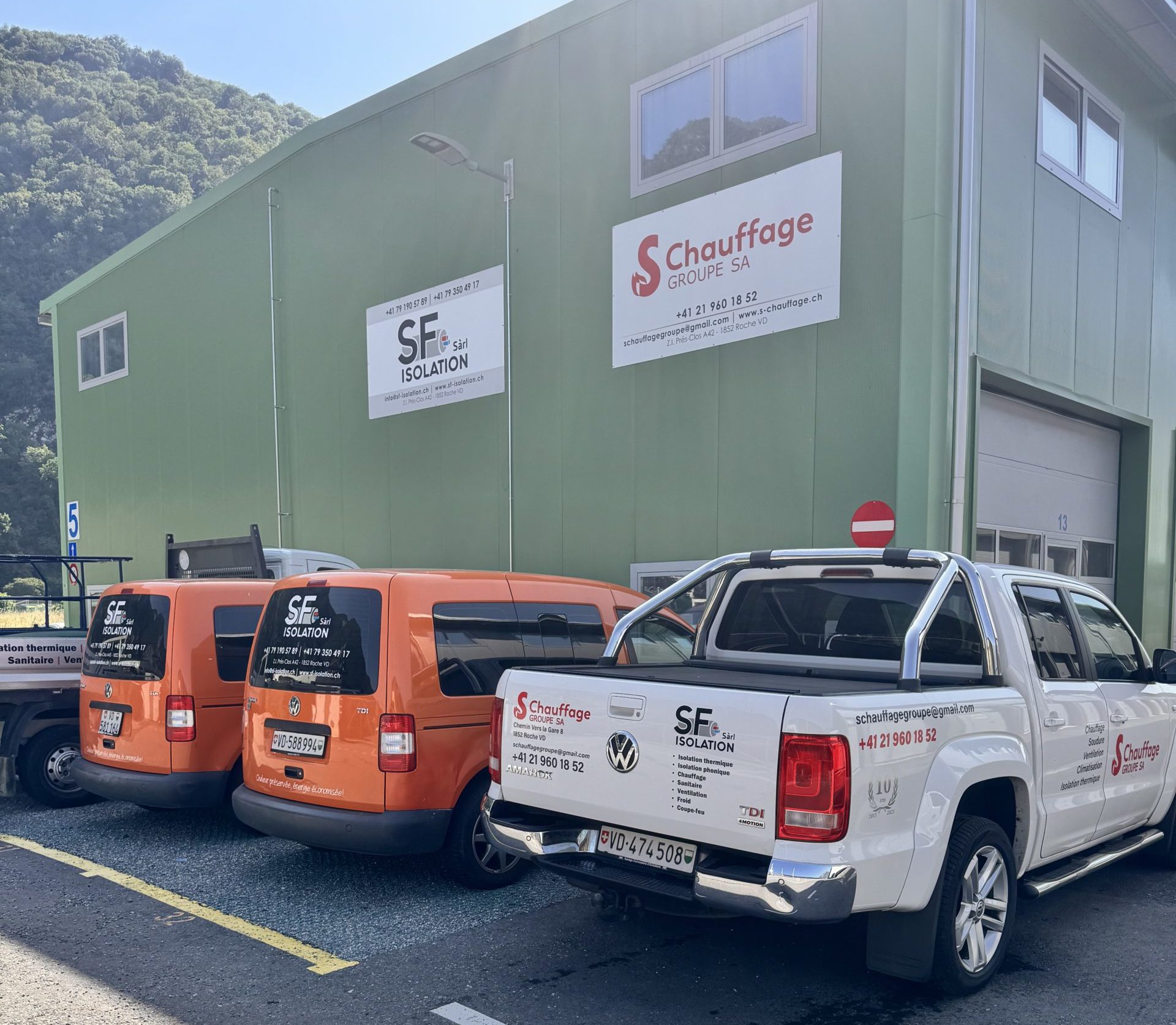 Sur cette photo, découvrez notre flotte de véhicules, le reflet de notre sérieux et de notre professionnalisme. Chaque véhicule, équipé et entretenu avec soin, est prêt à intervenir rapidement chez vous. Ils parcourent chaque jour les routes de Suisse romande pour vous apporter des solutions fiables en chauffage et isolation. Derrière chaque intervention, notre équipe est là — mobile, réactive et à votre service.
